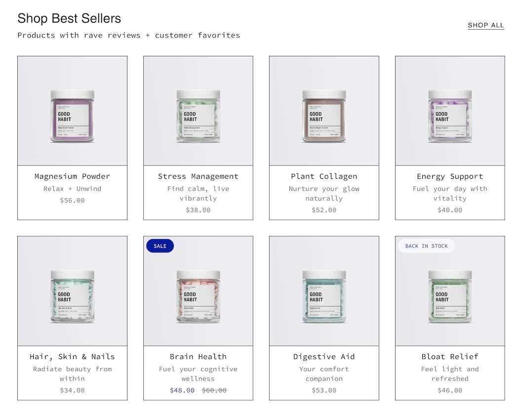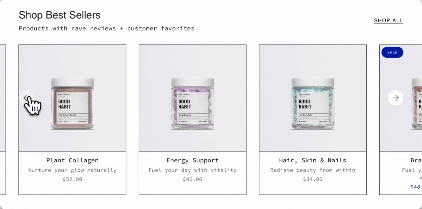 Easily feature a collection of products with this section. Choose from grid or slider layout options to optimize the space on your page.